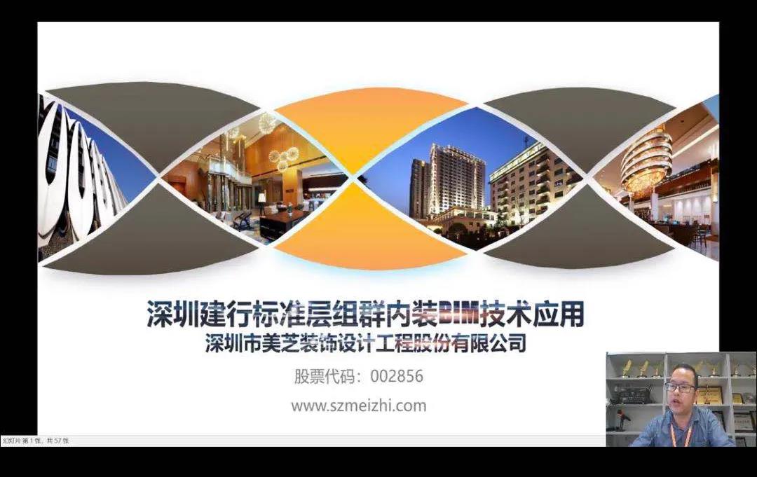 2020年10月15日,美芝股份研究院副院長廖世剖先生應邀參加由中國建筑裝飾協會工業和信息化分會、中國建筑裝飾知行學院聯合主辦的數字裝飾線上直播,分享題為《深圳建行標準層組群內裝BIM應用介紹》。